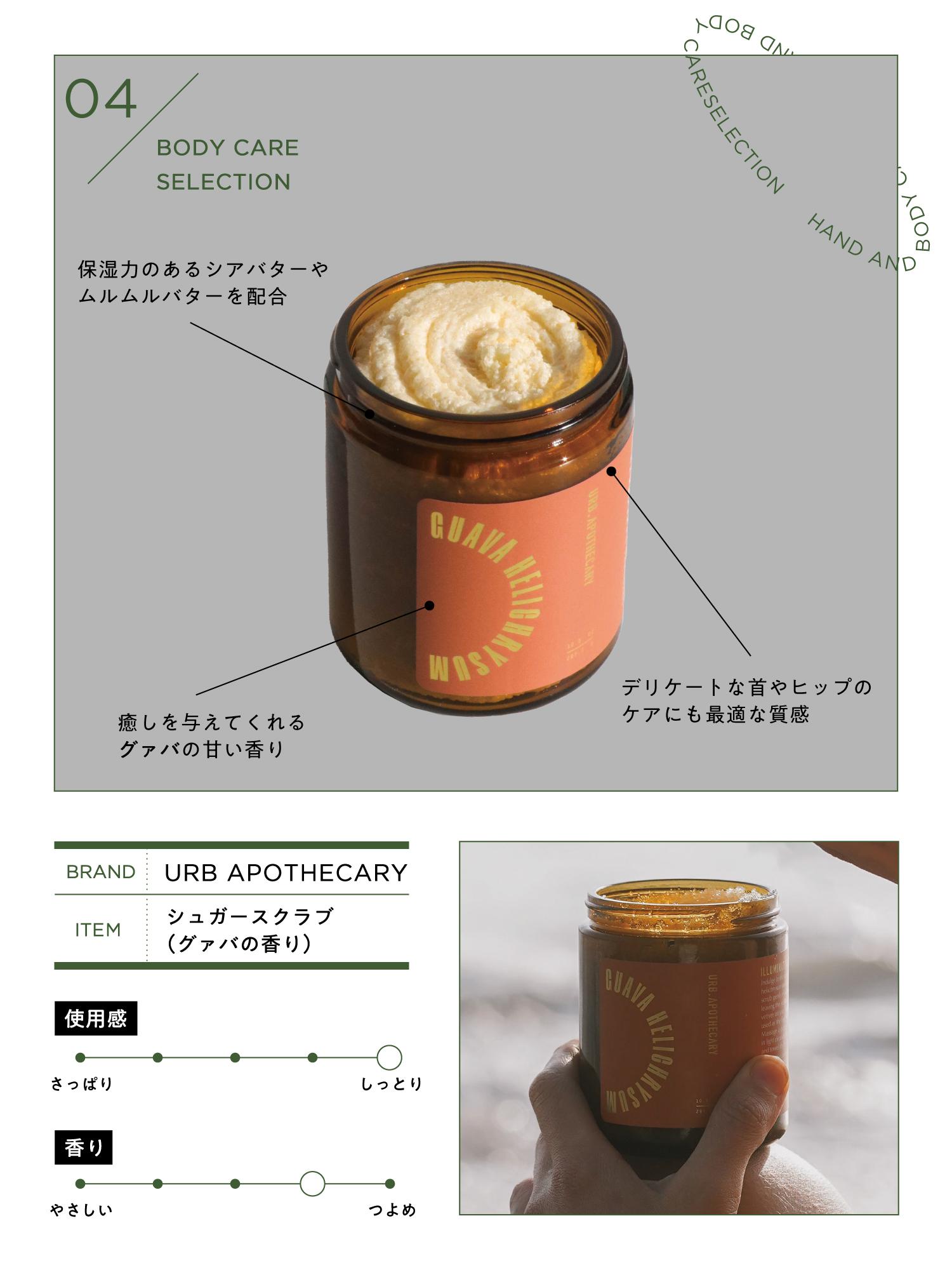 開けた瞬間漂う、とっっってもジューシーなグァバの香りに思わずニンマリ。お砂糖でできたスクラブはすぐに角が丸くなり、やさしい使い心地。肌への負担少なくケアできるのが嬉しいポイントです。ムルムルバターの力で、洗い流した後はかなりしっとり肌に。乾燥が気になる冬にもおすすめの角質ケアアイテムです。