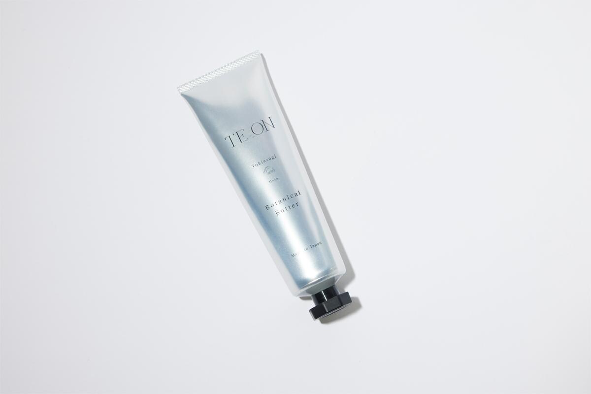 持ち運びにも便利なチューブタイプの、〈TE.ON〉のボディバター。手の温度でオイルを含んだ柔らかいクリームに変化し、しっとりとした肌へと導いてくれます。
