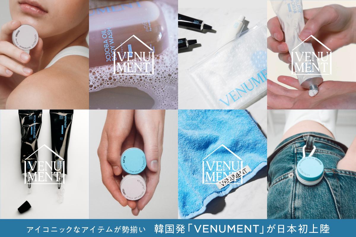 韓国で注目を集めるライフスタイルビューティーブランド〈VENUMENT(ベニュメント)〉が日本初上陸!サックスブルーが効いたアイコニックなアイテムには、年齢や性別問わずに愛される工夫がたっぷり。