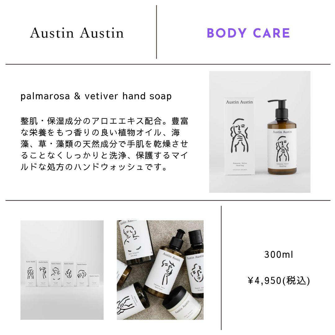 ジェルタイプで泡立ちも◎。洗っているときはもちろんその後も香りが残ります。植物由来のオイル配合でしっとりとした洗い上がり。お風呂上がりは同じボディオイルを使っていただくとより香りを満喫できます。