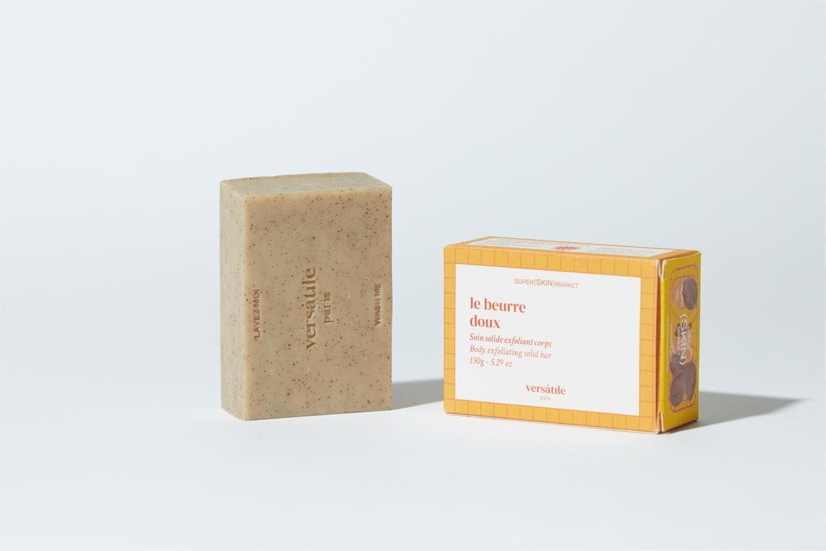 ソープバーは、使用するとヘーゼルナッツ、コーヒー、シアバターの香ばしく甘いお菓子のような香りがバスルームに立ち込めて幸せな気分になります。ボディにそのまま滑らせてスクラブとして使用することも可能。細かな粒子のスクラブが洗いあがりの肌をすべすべにしてくれます。背中やひじ、かかとなどの角質ケアにおすすめです。