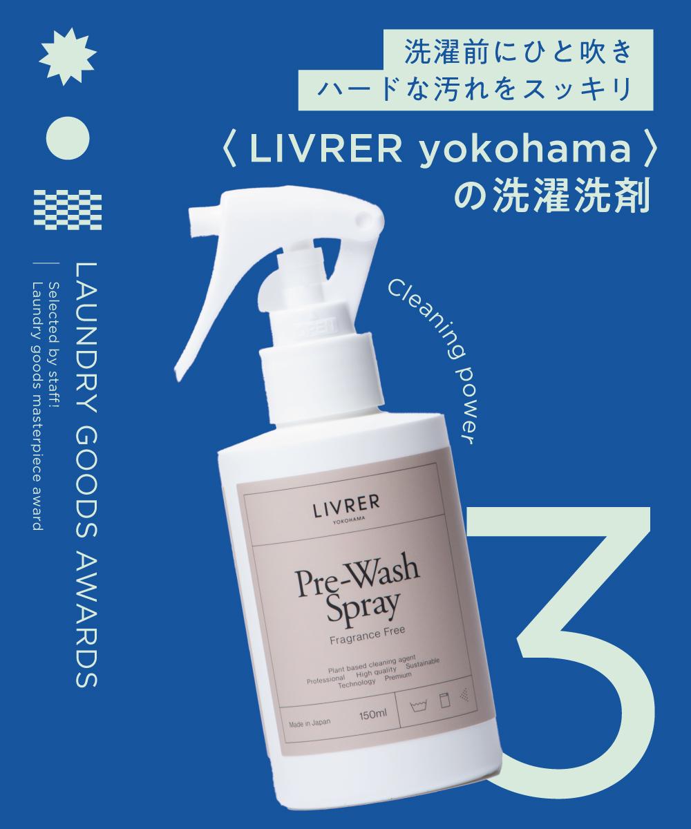 新習慣としておすすめしたいのが、〈LIVRER yokohama〉のプレウォッシュスプレー。ファンデーションや食べこぼし、皮脂汚れなど、気になる箇所に吹きかけてから洗濯するだけで、頑固な汚れがすっきり。