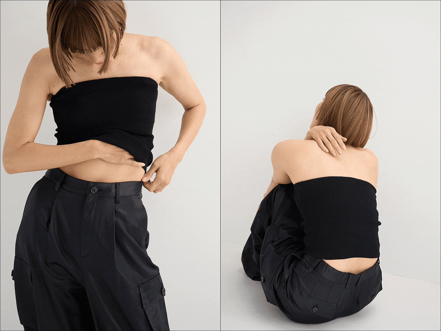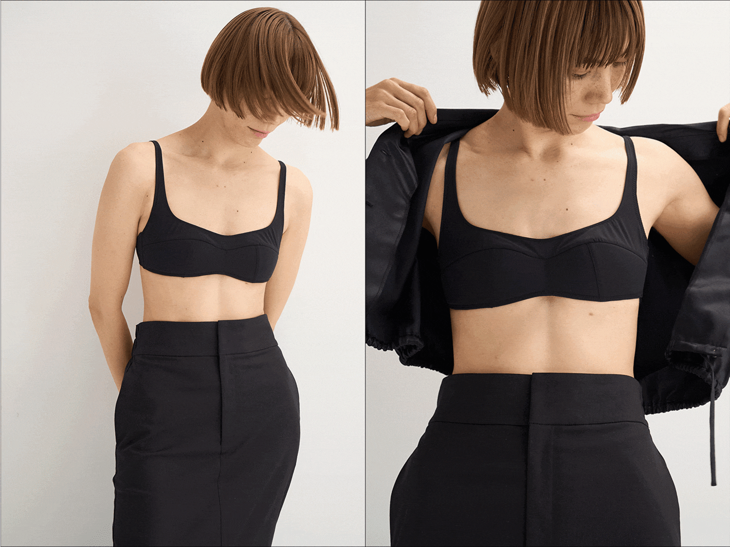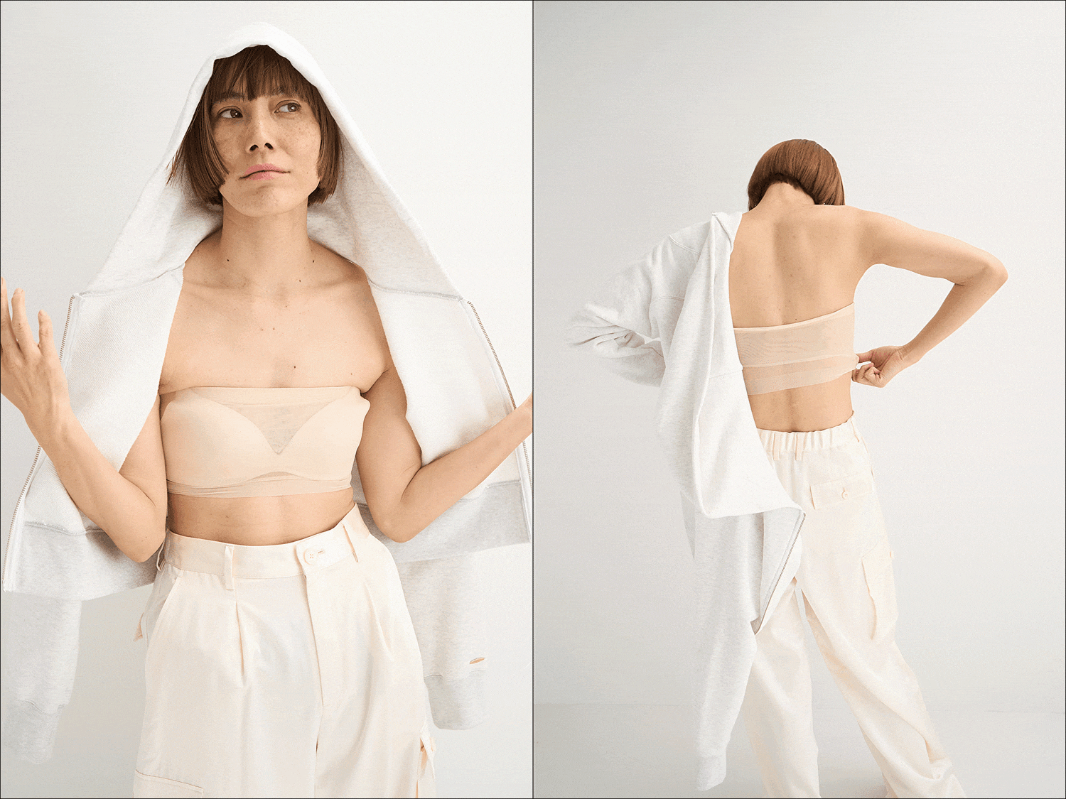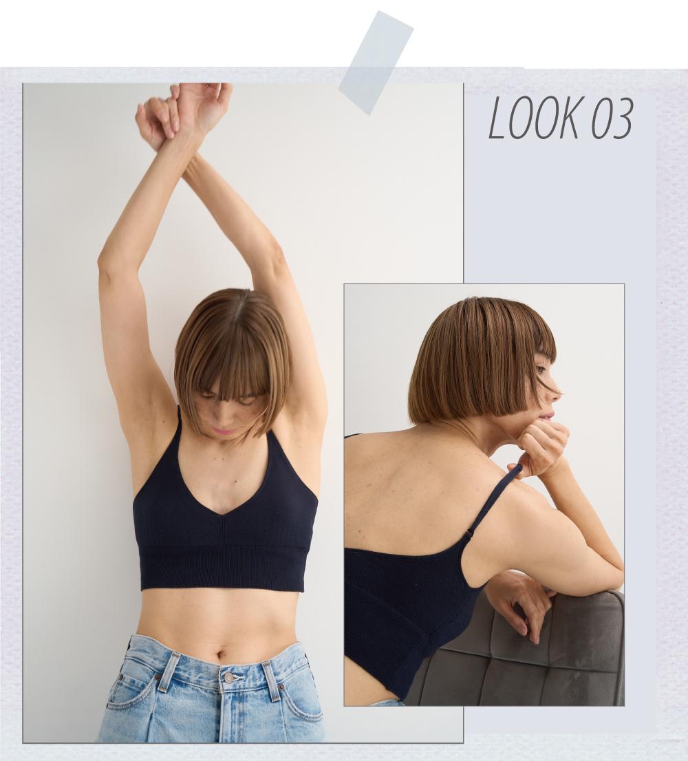 “見せたい”インナーウェアで作る10ルックをシューティング。今回は、一枚で着こなせるカップ付きインナーウェアを展開する〈NICENICE MOMENT〉と〈nakes〉をご紹介。新作インナーウェアをワードローブに取り入れて、いつものスタイリングをブラッシュアップ。