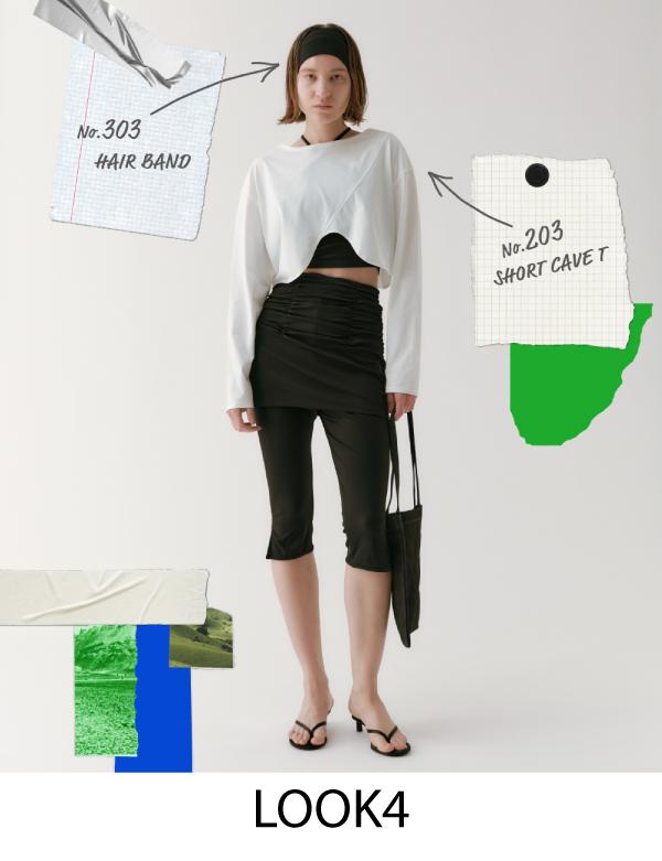 ロング丈カーディガンは腕まわりをゆったり&袖口にかけて細く作られ、腕をすっきり細長く見せてくれる設計に。スナップボタンを半分まで留め、下はボタンを外すことで、メリハリのあるシルエットが叶います。ウエストにたっぷりギャザーをあしらったブルマーパンツは、股下を少し余らせて履くのがおすすめ。ショーツ型のインナー付きなので、ゆとりのあるシルエットでも安心です。内側にはコインやチケットが入る極小のポケットも完備。8cm幅のリブ素材のヘアバンド(5月中旬入荷予定)は、スタイリングを今年顔に仕上げてくれます。
