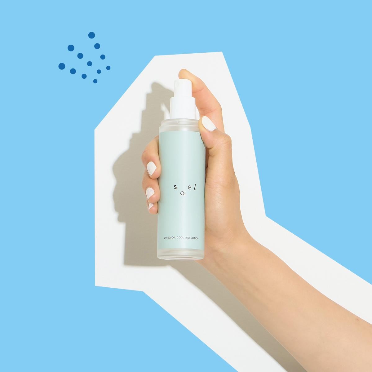 〈soel(ソエル)〉 の夏季限定アイテム「クールミストローション」が新登場。こちらのローションは、天然由来成分99%以上でありながら、べたつきをやわらげ清涼感を叶えるミスト式化粧水。保湿成分が角質層までゆっくりと浸透し、アーチチョーク葉エキスなどが肌荒れにもアプローチします。クールミストと聞くとミントのような香りを思い浮かべる方も多いかもしれませんが、soelのミストはかすかにウッディなニュアンスを感じるシトラスフローラルの香り。全身に使えるので日焼け後のクールダウンやデオドラント代わりに使用するのもおすすめです。