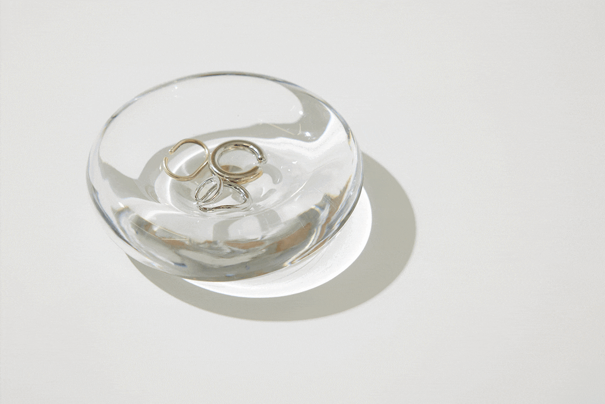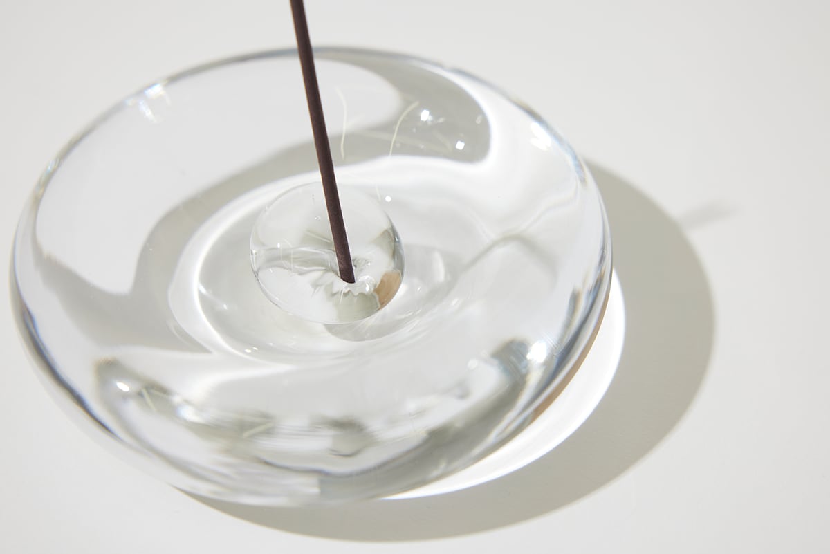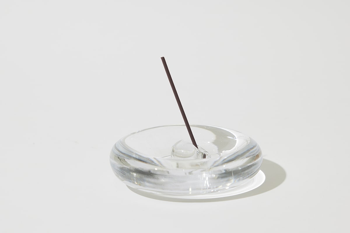 デザイナー・井上蘭氏が手がける〈LAN〉のインセンスホルダーは、ぽってりとしたトレイと、小さく愛らしいお香立てがセットになったアイテム。光を受けてキラキラと輝く姿は、見ているだけでも心がほぐれます。