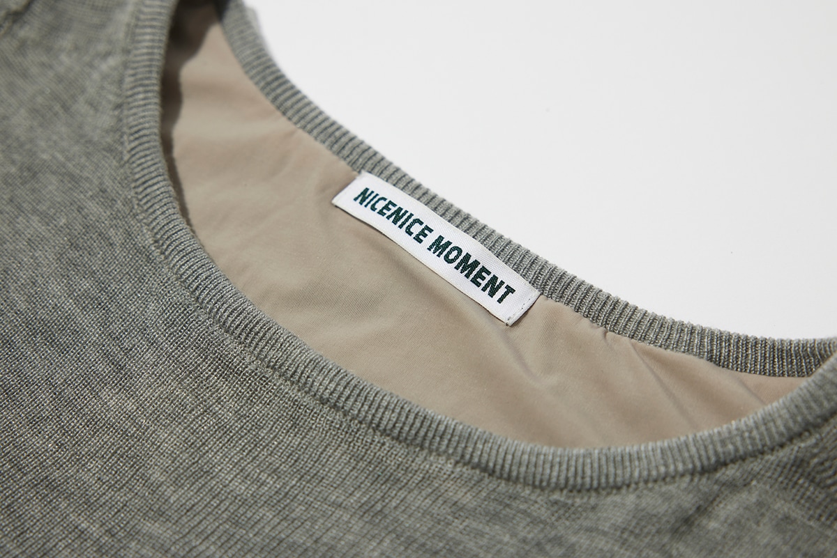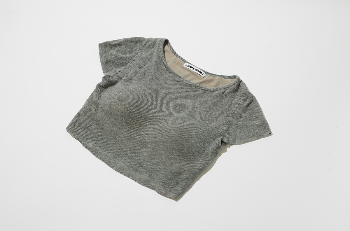 〈NICENICE MOMENT〉のラインナップに新たに加わったクロップド丈の半袖ニットトップスは、テンセルストレッチにカシミヤをプラスした「ベースブレンドシリーズ」の一枚。
