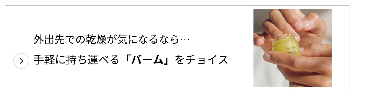 バッグに忍ばせて気になったときにサッと塗れるバームは、乾燥が気になる季節の強い味方。