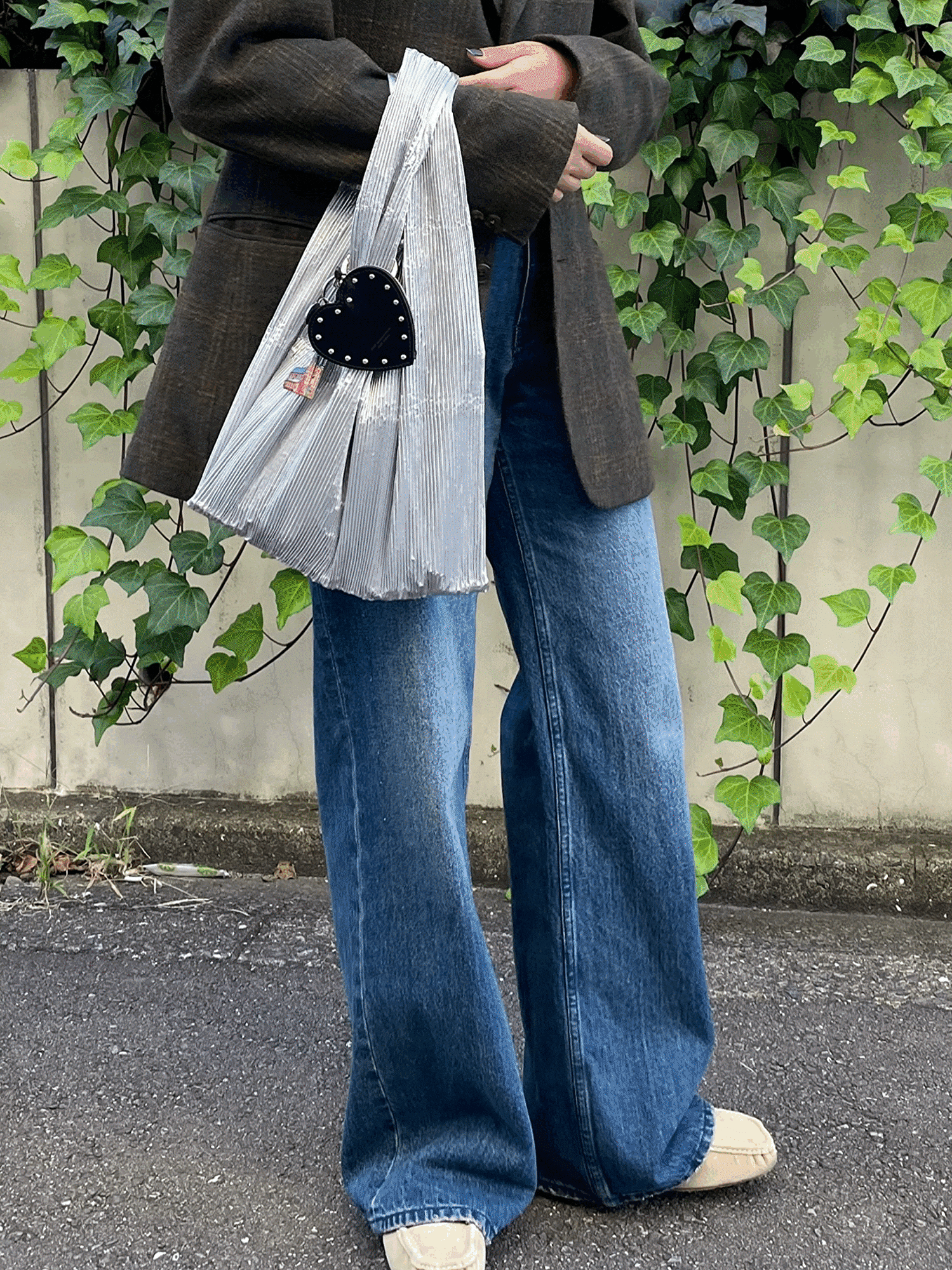定番のBAGGUとは異なるプリーツデザインで、華やかさと上品さを兼ね備えています。カジュアルからドレッシーなスタイリングまで馴染んでくれるので、服のテイストを選ばずスタイリングを楽しめそう。