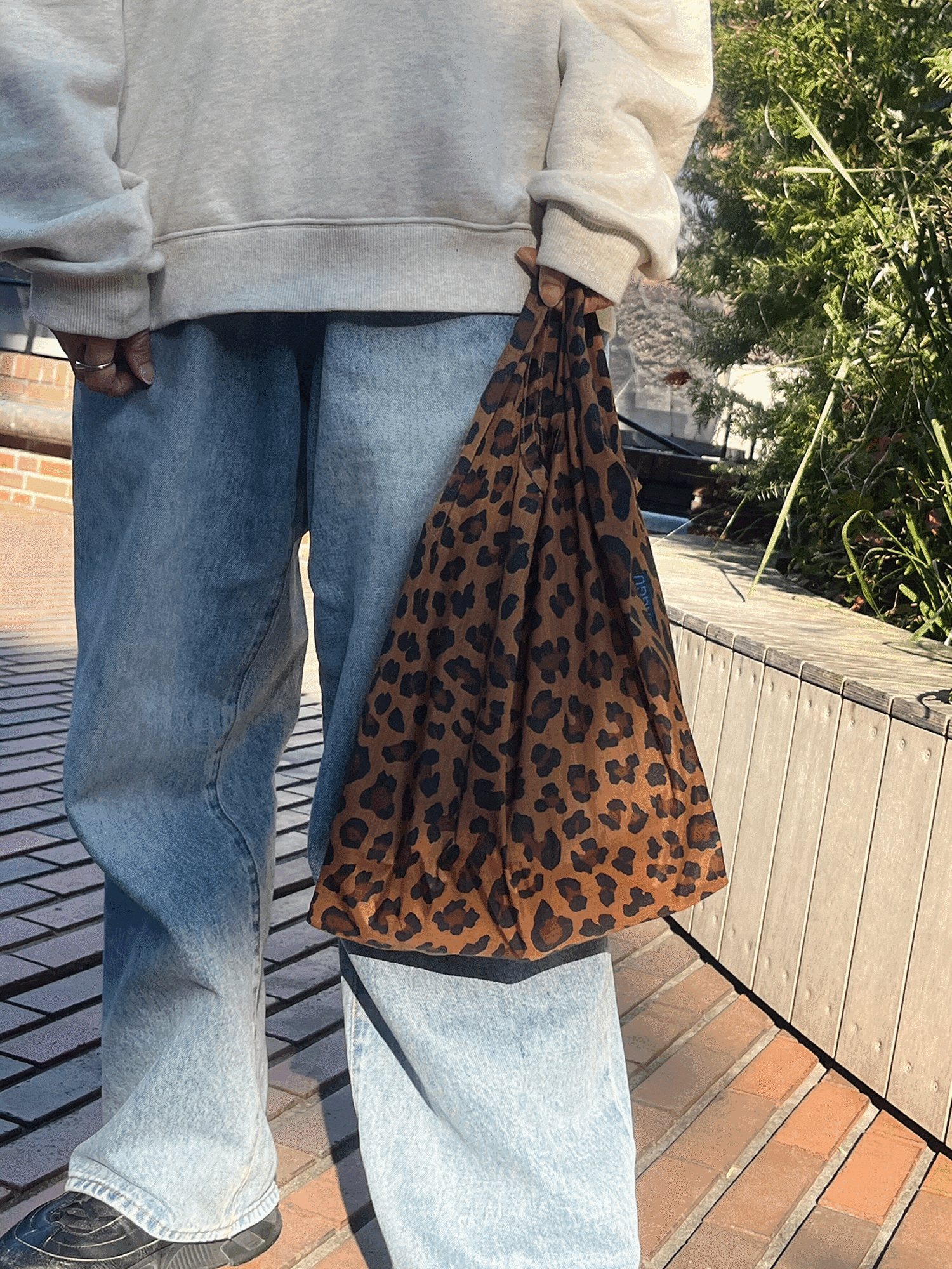 ほぼ毎日バッグに入れて愛用している、小ぶりなサイズの「Baby Baggu」。サイズ感もちょうどよく、撥水性や耐久性に優れた素材で作られているので、濡れてしまった子どもの衣類を入れたり、お出かけ帰りに軽くスーパーでお買い物をするときのマルシェバッグとして使ったりと大活躍しています。 レオパード柄のこちらは、今の季節にもぴったり。ファッションの差し色にもなるので、お気に入りです。
