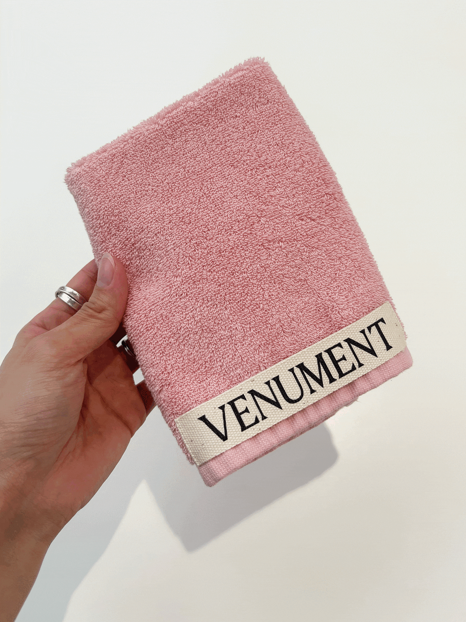 〈VENUMENT〉のハンドタオルは、大きめサイズが使いやすくお気に入りです。仕事でも活躍しますし、プライベートのお出かけでは子どもの手や口元を拭くのにも便利。ラグジュアリーホテルのアメニティでも採用されている厚めのコンベッドコットン生地を使用しているので、へたらずガシガシ使えます。