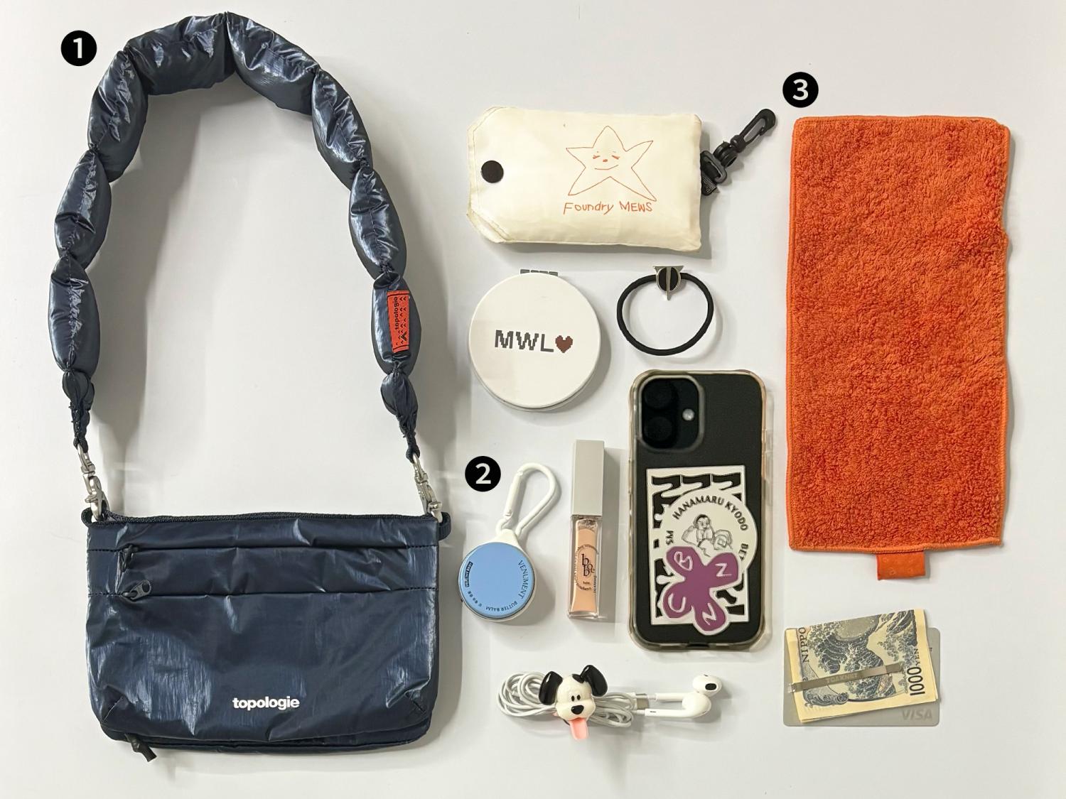 ❸ミニバッグでもかさばらない、高機能タオルで外出をスマートに