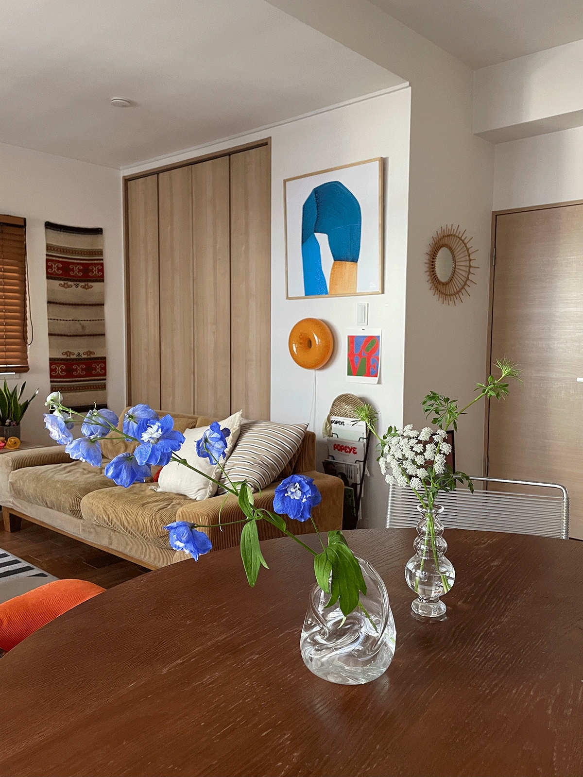 ちゅるんとした透明感のあるガラスと、ぽってりとしたシルエットにひと目惚れして迎えた〈LAN〉のお香立て。ひとつひとつ手作業で作られたプロダクトは、思わず見惚れてしまうほどの美しさで、空間にさりげない抜け感をプラスし部屋の雰囲気をぐっと引き上げてくれます。