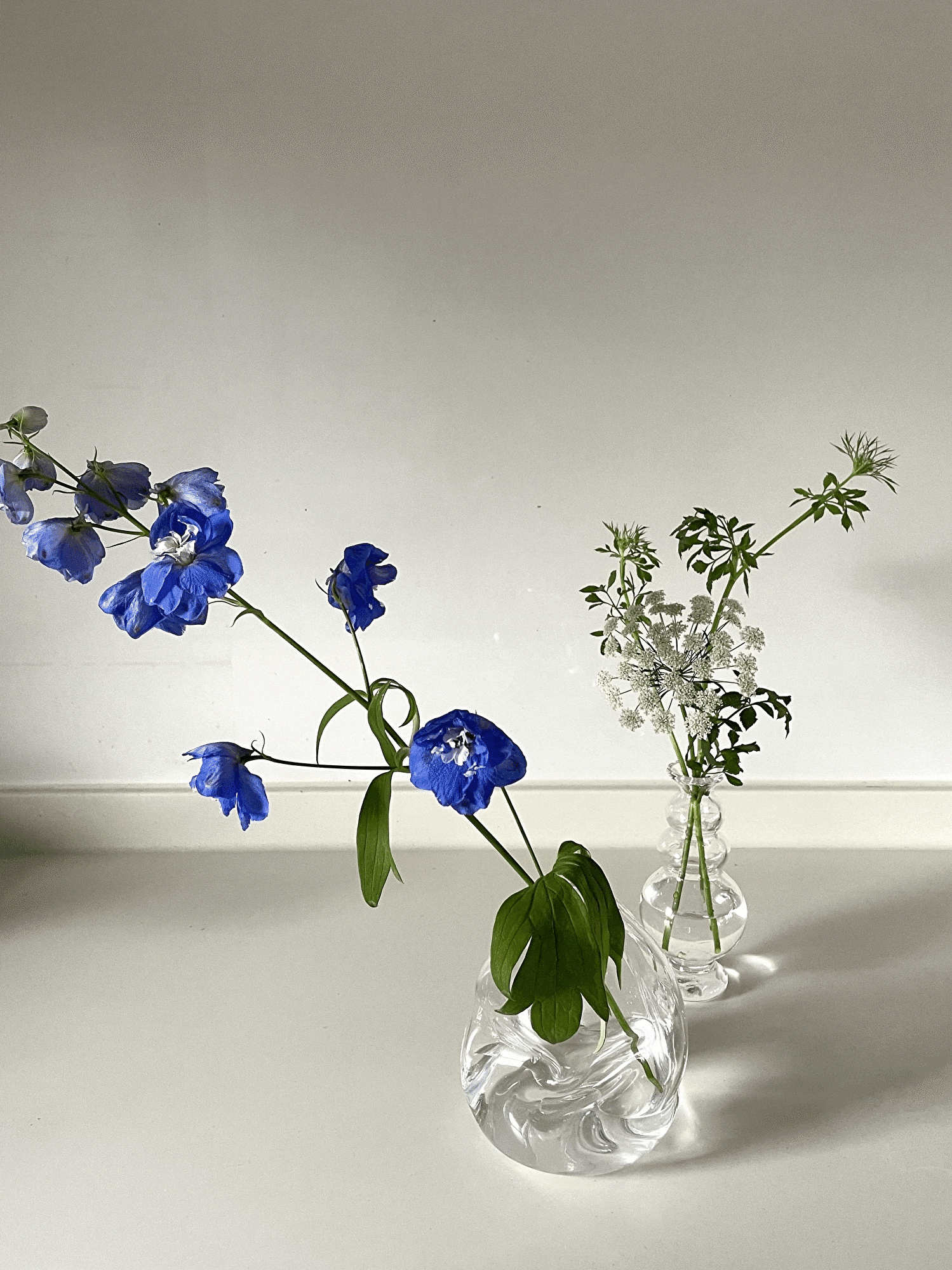 植物を愛でていると心に余裕ができるので、花をよく飾るのですが、花器とのバランスをあれこれ考える時間も好き。今回は、意外と持っていなかったクリアガラスのデザイン花器をはじめてチョイスしてみました。