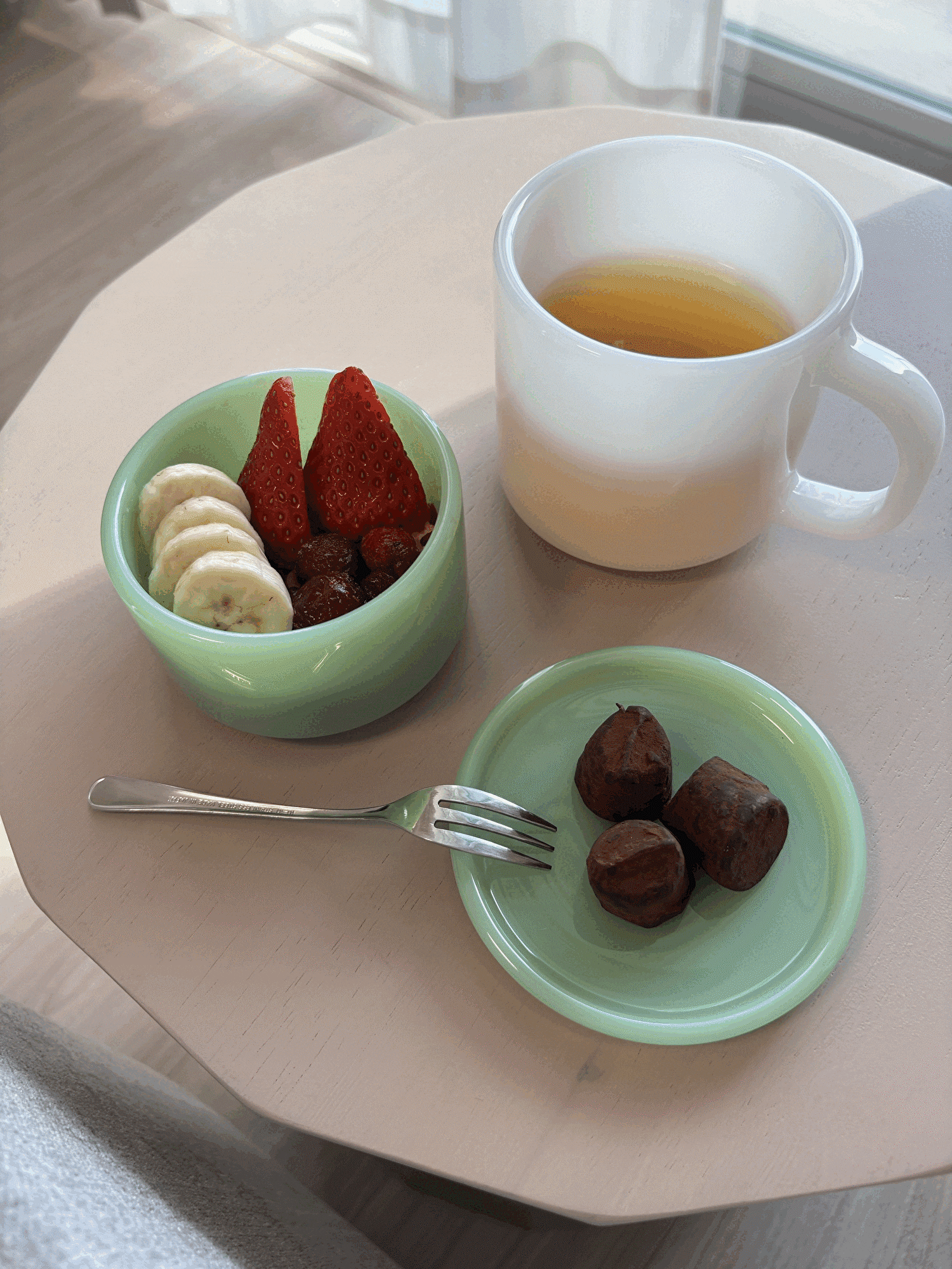クリアはフタを外して、ドリップコーヒーの粉やツールを収納。多い日は1日3、4回コーヒーを淹れることもあるので、手の届くところでまとめておけるようにしています。クリアの方は入れるものによって雰囲気が変わるところも気に入っています。複数個揃えたくなるデザインなので、ラウンド型の方も購入を検討中です。