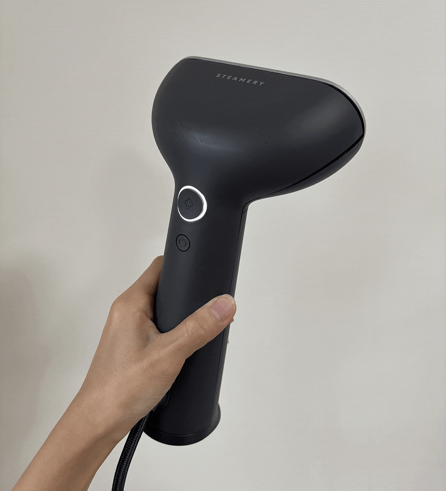 アイロン台を出すのが面倒で、ついついシワになりにくい服を選びがちな今日このごろ。〈STEAMERY〉のアイロンスチーマーは約30秒で立ち上がり、朝の忙しい時間でもサッと衣類をケアできるので、とても便利で驚きました。