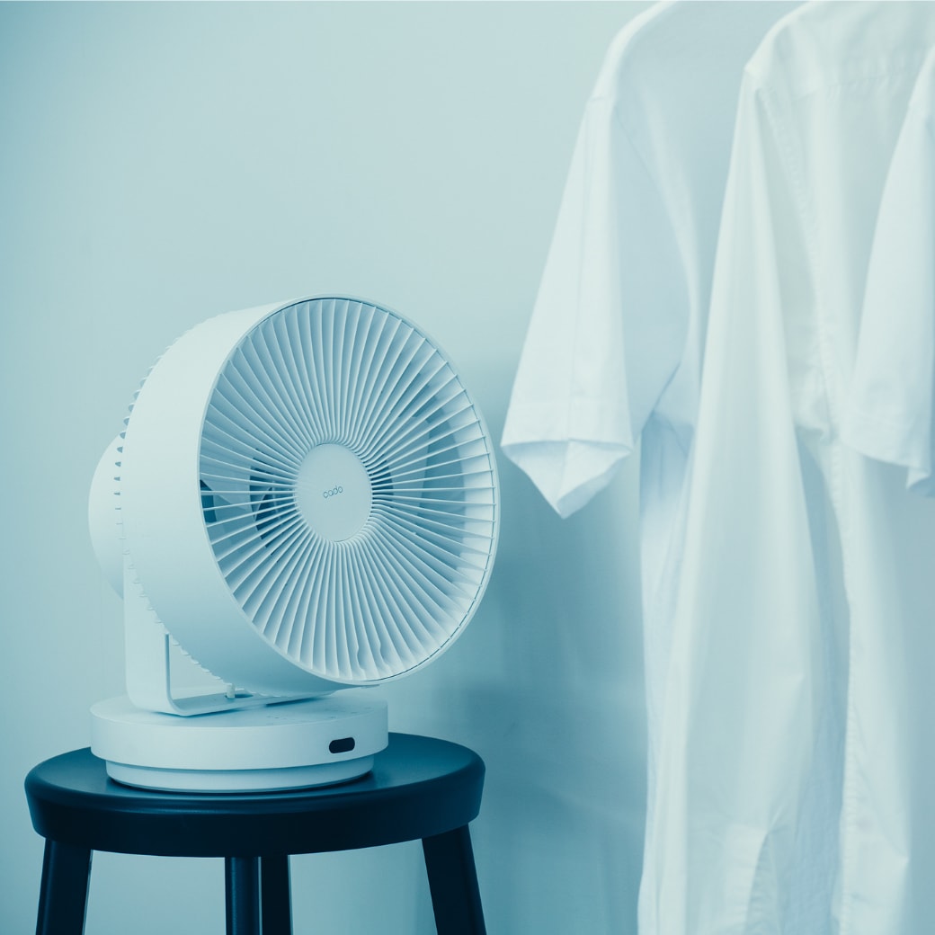 部屋干しは外干しに比べて日光が当たりにくいため乾くのが遅く、生乾き臭がしてしまい、湿気で壁や床など部屋全体までジメジメしてしまうことがあります。cadoの除菌性能のあるサーキュレーターで雨上がりや梅雨時期などの部屋干しを効率よく消臭乾燥し、乾燥時間も短縮できます。